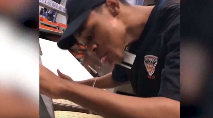 Empleado escupe pizza que preparaba y todo quedó grabado