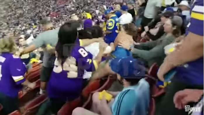 Aficionados de Los Angeles Rams y Minnesota Vikings protagonizaron una batalla campal en el Memorial Coliseum durante el partido que se disputó la noche del jueves, correspondiente a la semana 4 de la NFL.