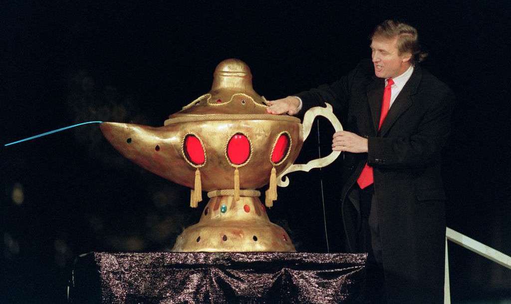 Trump en 1990 en su casino Taj Mahal. BILL SWERSEY/AFP/Getty Images Crédito: Getty Images