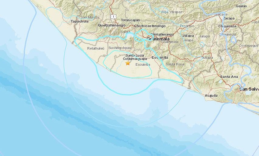 El sismo ocurrió a 5 millas al este de Nueva Concepción, en Guatemala. Crédito: USGS