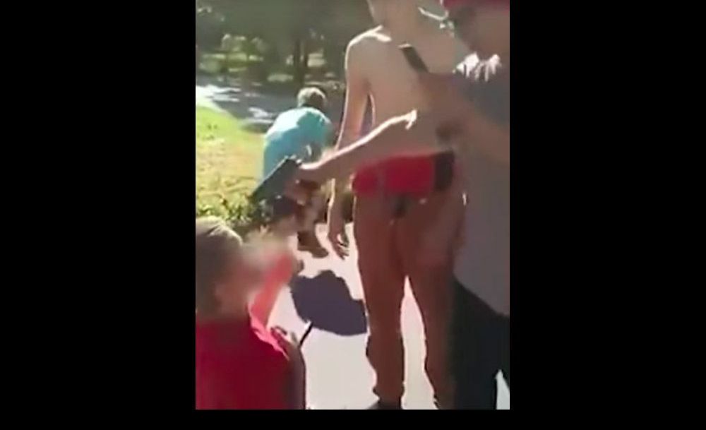 El video publicado en Facebook muestra cuando un joven le grita a otro, mucho menor y arrodillado, que le bese los pies. En un momento aparece otro adolescente con un arma y le apunta con una pistola.