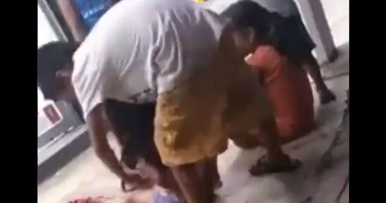 En las imágenes se observa a tres niños que son los “secuestradores” que someten a dos niñas, a quienrs esposan y luego uno de ellos hace movimientos tratando de simular que “decapita” a una niña.