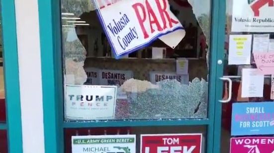 El ataque a la sede republicana en la localidad de South Daytona no causó víctimas, aunque dejó vidrios rotos y daños en una de las paredes del edificio.
