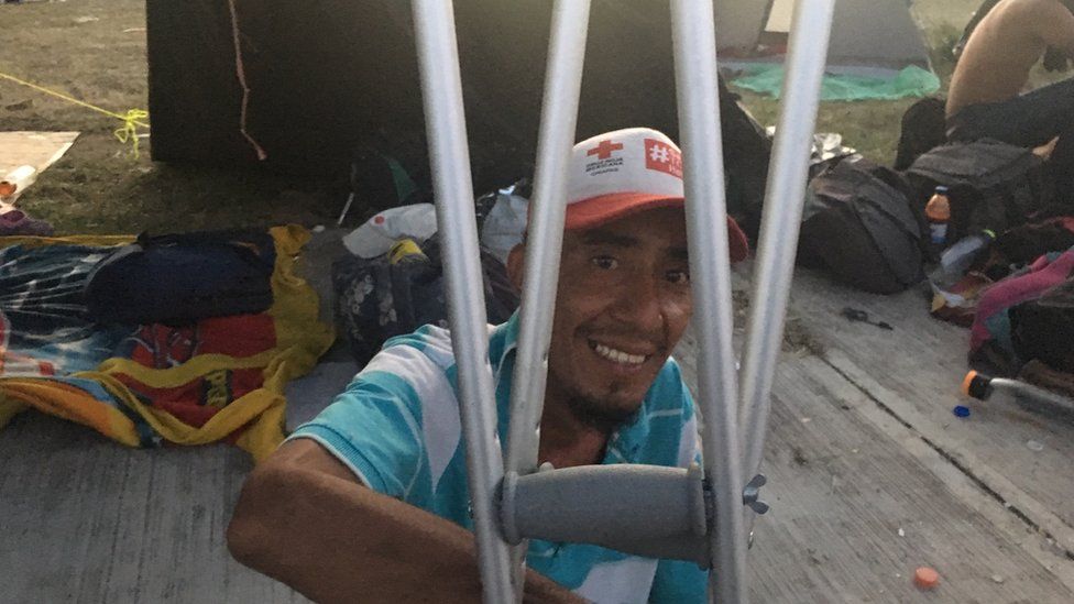 El trayecto no es fácil para la caravana de migrantes centroamericanos que atraviesa México con esperanzas de encontrar una mejor vida en Estados Unidos, pero entre ellos encontramos a un hombre discapacitado que sigue adelante con el mismo ahínco y determinación.