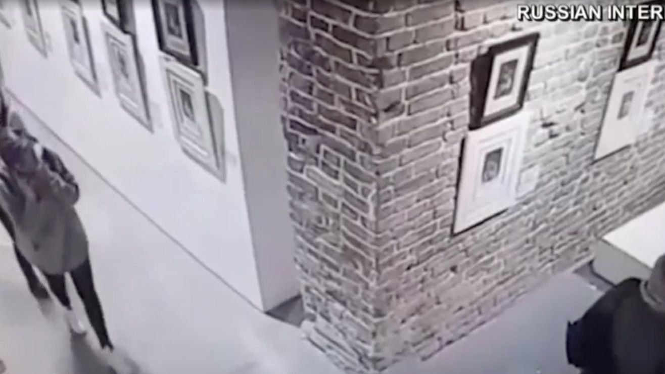 Todo el suceso fue capturado por las cámaras de seguridad. En las imágenes de la CCTV se ve a las chicas cerca de un muro temporal, donde colgaban los cuadros. Cuando una de las chicas se para frente a la pared para tomarle una foto, la pared se derrumba. Una vez que la pared golpea el suelo, comprobamos que hay una segunda chica detrás de ella.