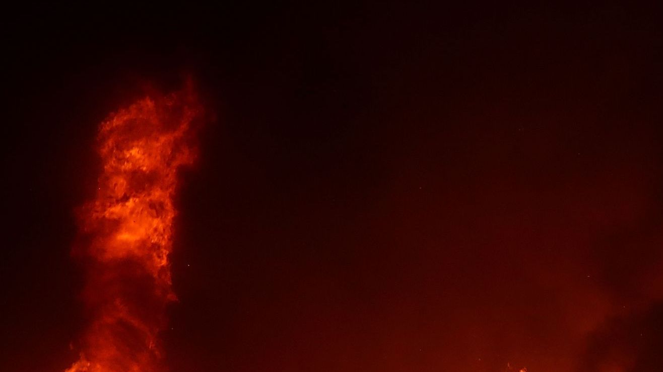 La intensidad del incendio causó el jueves este “tornado de fuego”.