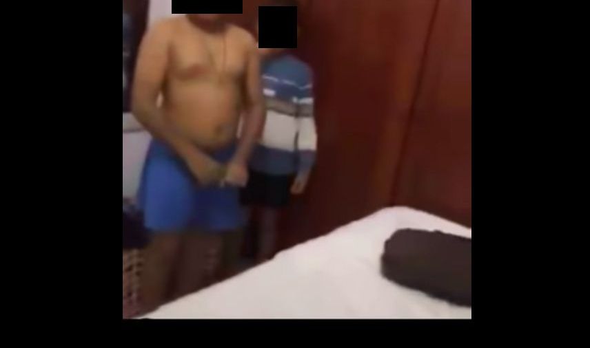En las imágenes que circularon en la red social, se oye al hombre hablar con los agentes que llegaron a su residencia a detenerlo. El sujeto está acompañado de dos menores.