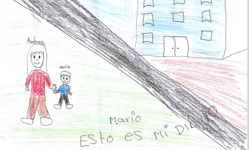 Un dibujo de "Mario", un niño guatemalteco que lleva 119 detenido junto con su madre en Dilley (Texas) forma parte de campaña de Amnistía Internacional USA contra detención de familias. Foto: suministrada Crédito: Amnistía Internacional USA