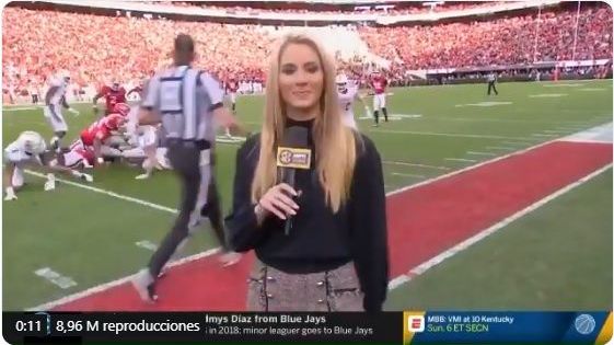 VIDEO: reportera de ESPN es tacleada en un partido de fútbol americano