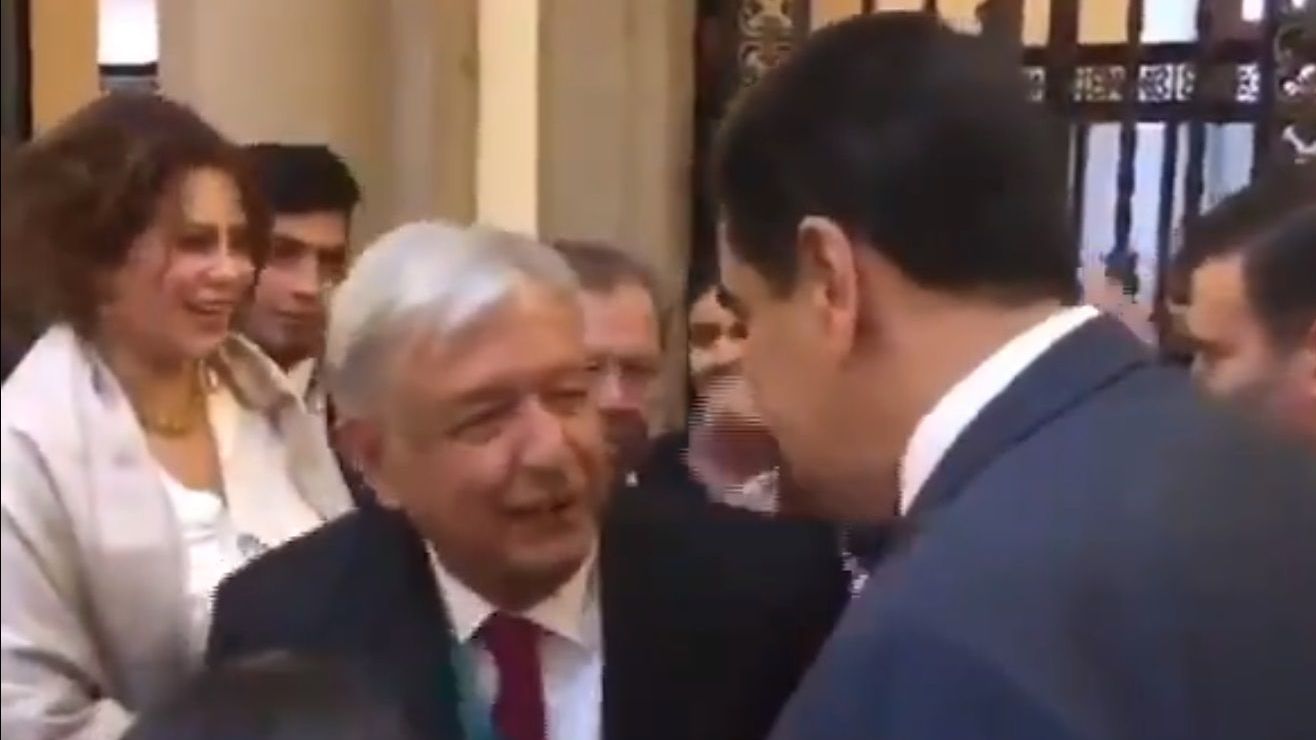 Aquí está el momento justo cuando AMLO, #PresidenteDeMéxico , agradece a Nicolas Maduro su visita a la #TomaDeProtesta https://t.co/LknIOtnZeV