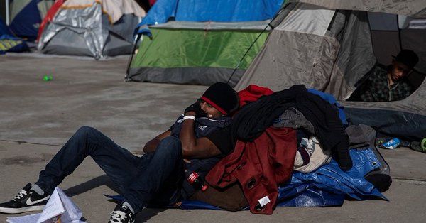 Migrantes en casas de campaña en Tijuana Crédito: Twitter