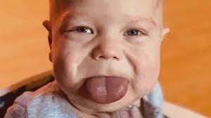 Un niño con la lengua extremadamente grande no tiene dinero para la operación