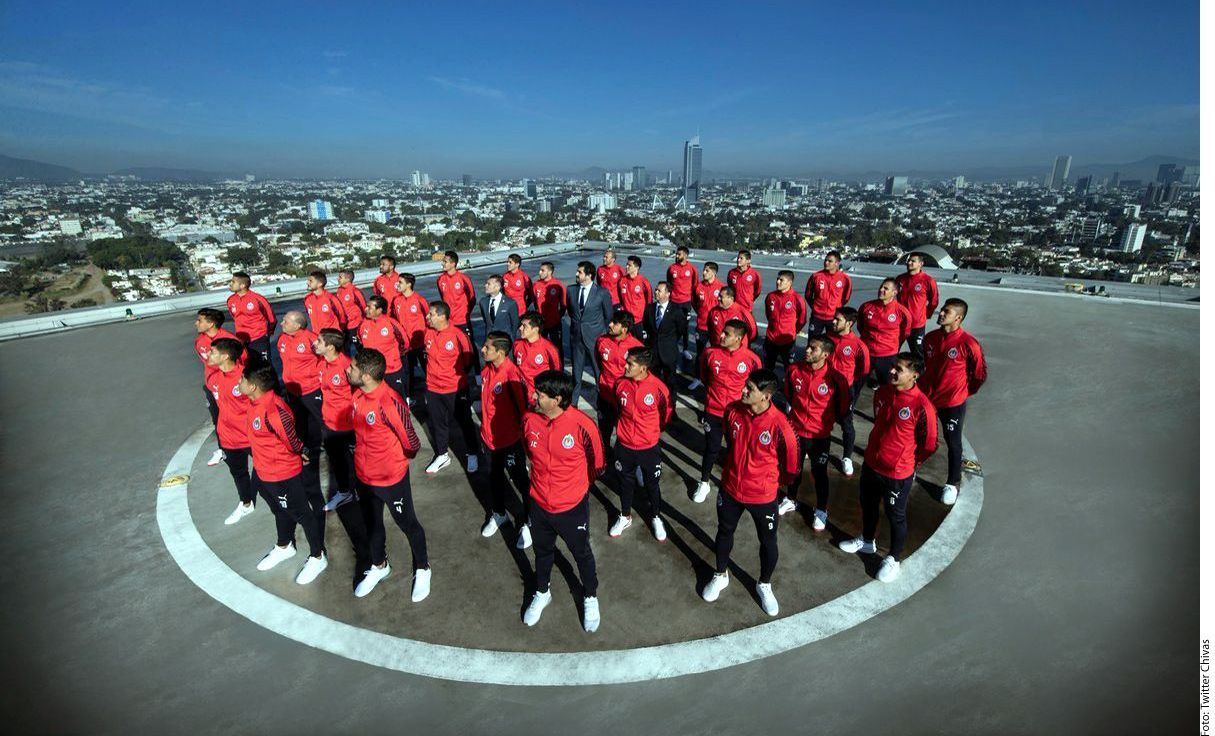 Chivas de Guadalajara se tomó la foto oficial desde el helipuerto de un hotel Crédito: Agencia Reforma