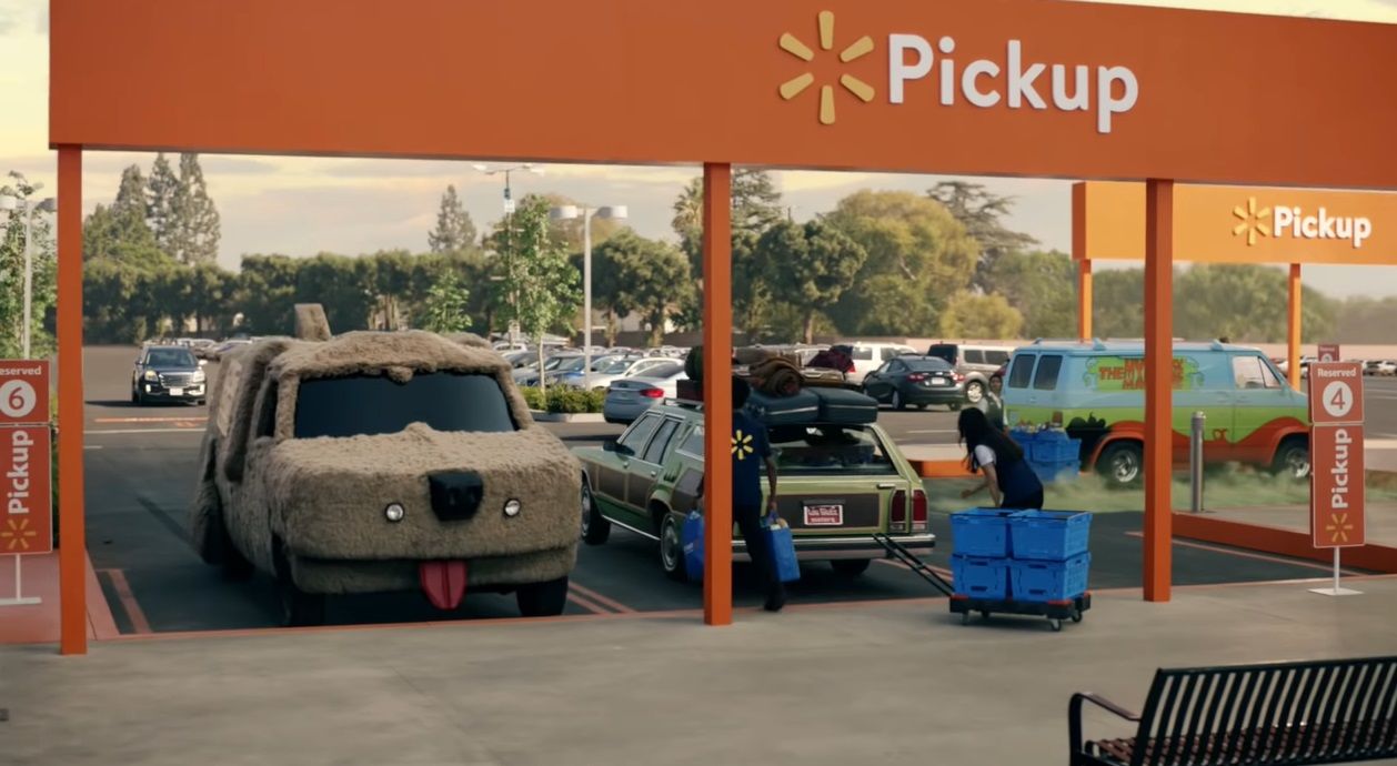 Todo es parte de una nueva campaña publicitaria que la corporación creó para promocionar su servicio de compras Walmart Grocery Pickup, el cual permite hacer las compras de supermercado sin tener que entrar a la tienda, sino pagar en linea y recoger sus víveres sin tener que bajarse de sus autos.