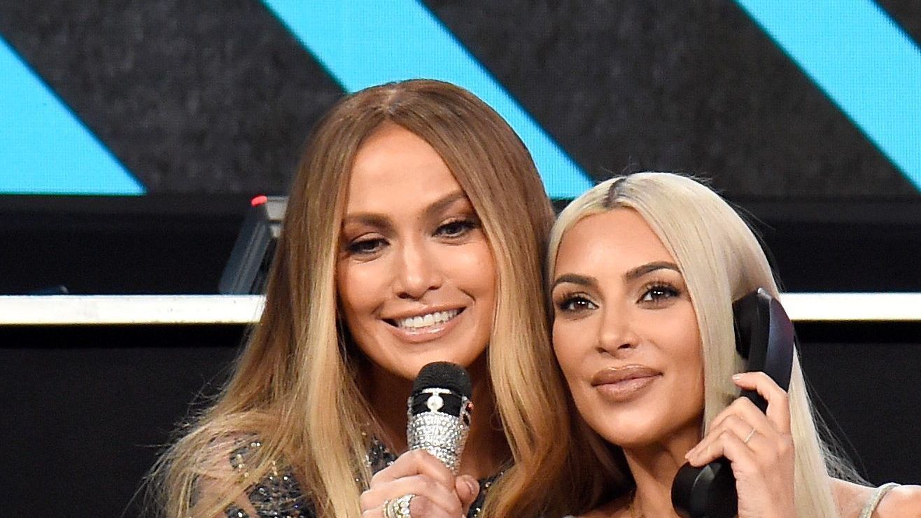 Jennifer López y Kim Kardashian. Crédito: Kevin Mazur/One Voice: Somos Live!/Getty Images
