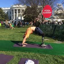 Dan Nevins practica yoga al aire libre. Crédito: Wounded Warrior Project)