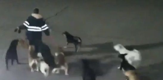 La cobradora de peaje aparece en las imágenes, capturadas el 28 de enero a partir de las 22:40 horas, corriendo para escapar de los colmillos de los perros callejeros.