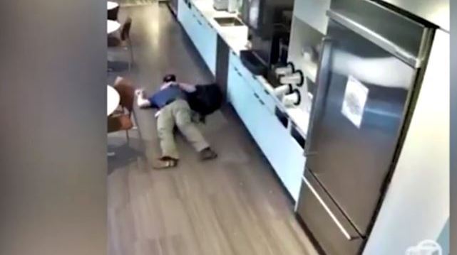 El hombre fingió que se resbaló. Crédito: YouTube