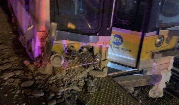 El servicio de la línea principal de Long Island Rail Road se suspendió mientras los investigadores examinan los daños y tratan de averiguar por qué ocurrió la colisión nocturna.