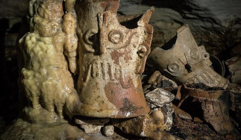 Cientos de objetos fueron hallados en una cueva en Chichén Itzá. Crédito: EFE