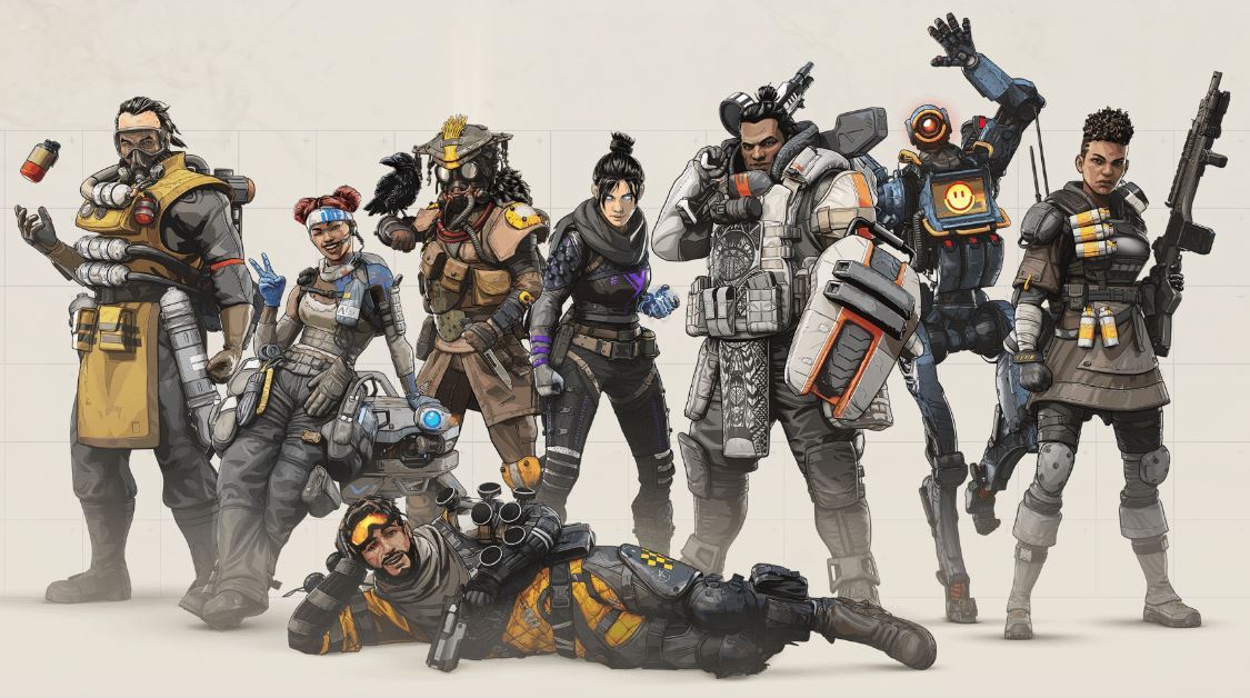 Para poder jugar, el usuario debe escoger uno de los ocho personajes de Apex Legens llamados: Bangalore, Bloodhound, Caustic, Gibraltar, Lifeline, Mirage, Pathfinder y Wraith, los cuales pueden afectar en la estrategia de la partida de acuerdo al seleccionado.