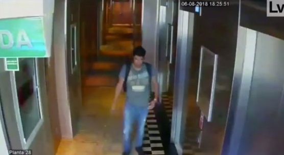 A eso de las 5:54 p.m., según se puede palpar en el video, un joven sube al piso 28 con una mochila y entra a la habitación.