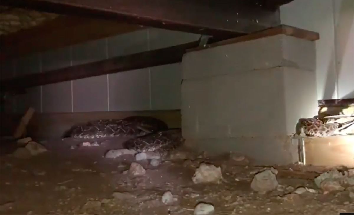 Las serpientes bajo la vivienda. Crédito: Captura