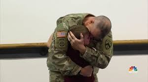 Escuchó una voz familiar y a penas pudo contener la emoción: era su padre, el sargento Rob Cesternino, que había estado en misión fuera del país durante casi un año. Luca se quitó la venda de los ojos y no podía creer lo que veía, mientras la sala vitoreaba el encuentro.