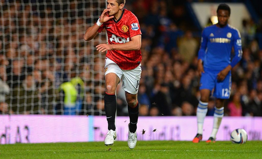 Javier "Chicharito" Hernández le anotó un gol al Chelsea a los 36 segundos en su primera temporada Crédito: Getty Images
