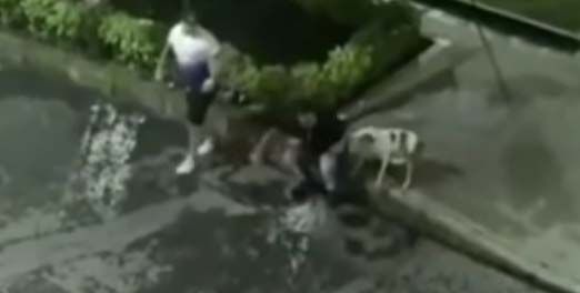 Cámaras de seguridad en la zona captaron la embestida del can que se encontraba sin bozal contrario a lo que dispone la legislación del país sobre este tipo de perros.