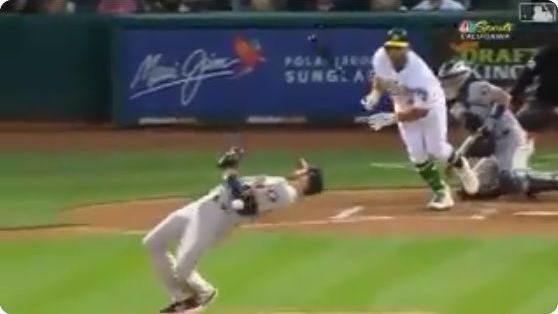 Sin embargo, más impresionante fue la capacidad de reacción y de elasticidad de McHugh para evitar que la bola se impactara en su rostro, doblándose hacia atrás literalmente a 90 grados, formando con su cuerpo una escuadra perfecta, evitando así el impacto de la pelota.
