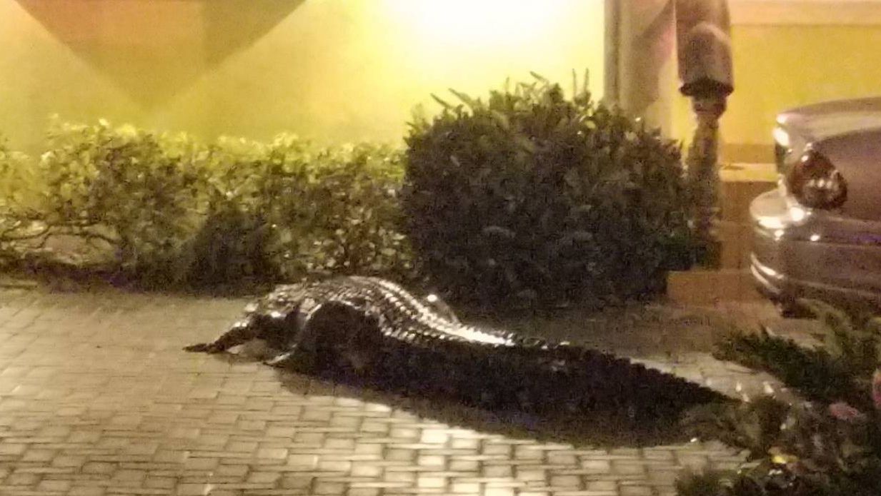 De acuerdo al diario Miami Herald, el caimán alcanzó la entrada de una vivienda particular y rompió la verja que da a su patio trasero, donde finalmente se metió. Los bomberos avisaron a los residentes de la casa sobre la presencia del reptil.