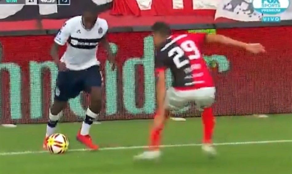 El delantero de @gimnasiaoficial 🐺 demostró su habilidad en esta jugada ante @CANOBoficial @JancaHurtado 👏👏👏👏 pic.twitter.com/U8yziBcagm