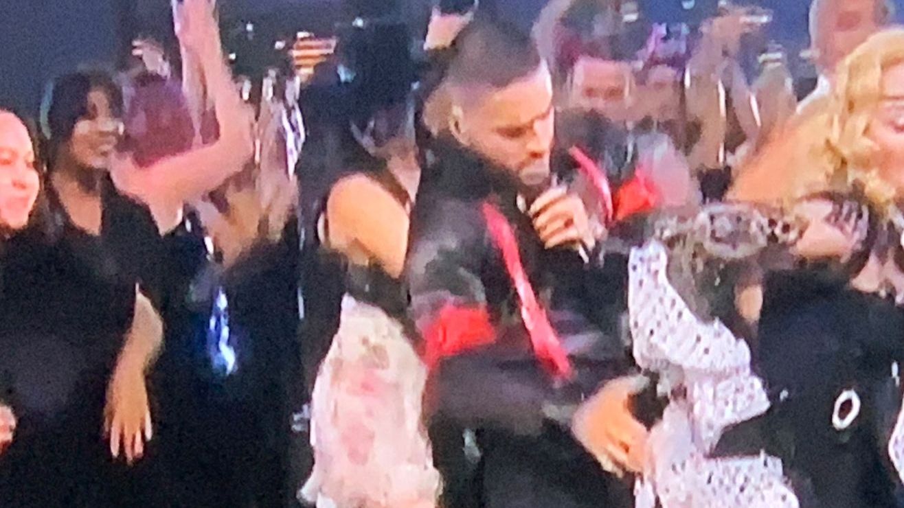 En un momento del número musical Maluma le quitó el liguero a Madonna y al terminar esta se dejó manosear por el reguetonero.