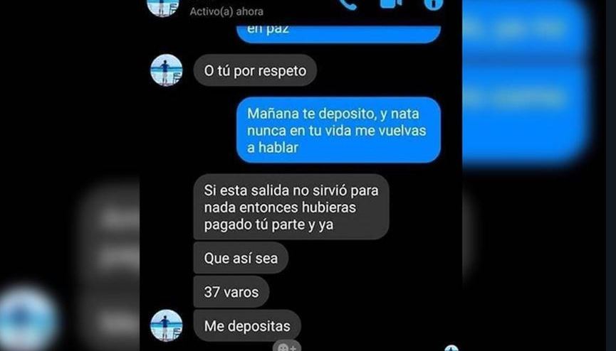 Al ver que su estrategia no le funcionó, el joven le envió una serie de insultos a la chica y además le reclamó su comportamiento en la cita, sobre todo el que haya pedido el helado más caro. Además, insiste en que tengan otro encuentro para que le pague el dinero, pero la mujer le indica que le dará un depósito.