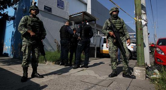Elementos del Ejercito Mexicano y policías federales resguardan una calle. Crédito: EFE