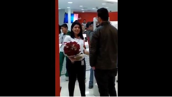 Un hecho que ocurrió en un local, dentro de un centro comercial en Perú, se ha viralizado rápidamente gracias a Facebook, el cual muestra el desplante que le hizo una chica, al parecer, a su novio, cuando este le llevó una romántica serenata, con flores y chocolates, al sitio en donde trabaja.