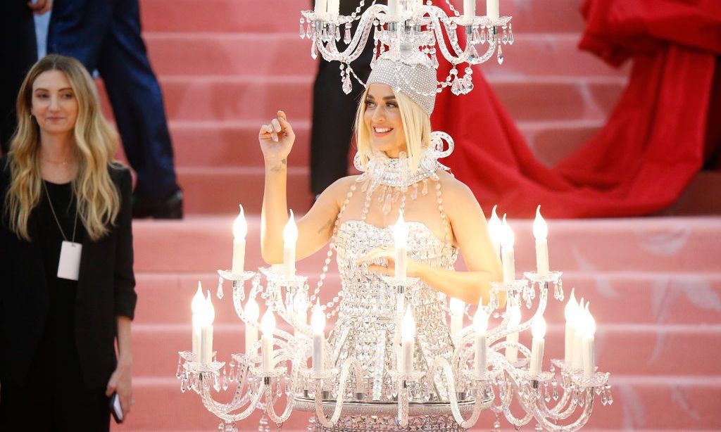 En ausencia de Rihanna, que se vio obligada a perderse la gala del Met de este año para cumplir con otros compromisos profesionales en Reino Unido, Katy Perry se propuso recoger su testigo y dejar bien alto el pabellón para las estrellas de la música con su vestido de lámpara de araña que, desde luego, se ajustaba a la perfección a la temática ‘camp’ de la velada gracias a su estilo excesivo y rayano en el mal gusto.