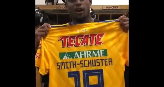 Juju Smith-Schuster presumió un jersey de Tigres que le regaló Javier Aquino Crédito: Captura Twitter