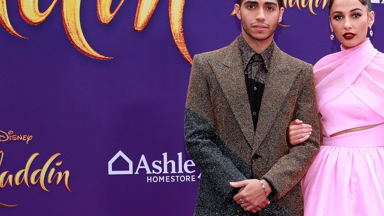 Mena Massoud junto a Naomi Scott. Crédito: Rich Fury/Getty Images
