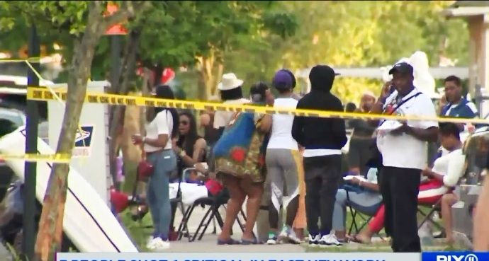 El primer tiroteo ocurrió a las 6:53 p.m. cuando un hombre disparó contra una multitud en un parque cerca de una escuela en Hemlock Street, East New York.
