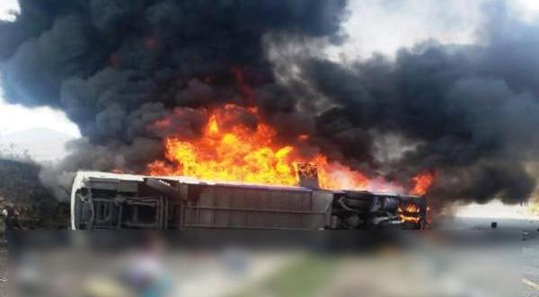 Imagen del Incendio de Autobús de Turismo Volcado después de impactará con un Tractocamión en km 242 Autop Puebla Orizaba Trébol Maltrata pic.twitter.com/3EPBveHfSi