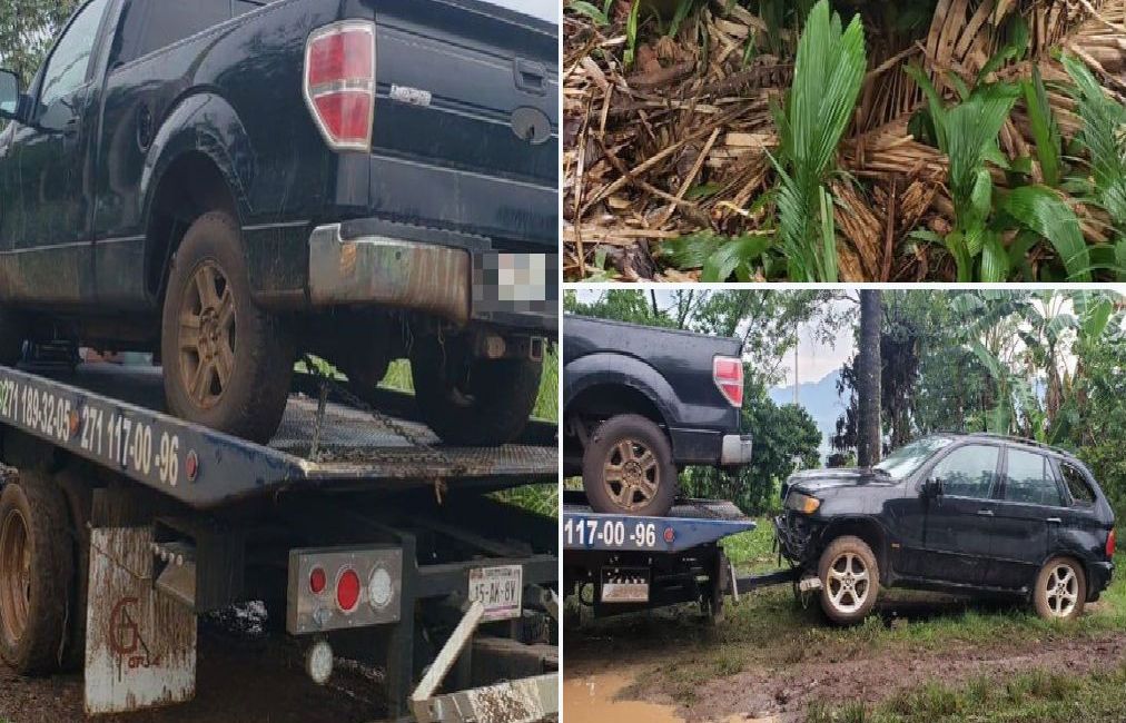 Según un comunicado de las autoridades, el decomiso se realizó con atención a un reporte por parte de la Secretaría de la Defensa Nacional (Sedena), en relación a unos vehículos abandonados con reporte de robo, así como la presencia de presuntas personas armadas en la periferia del hallazgo.