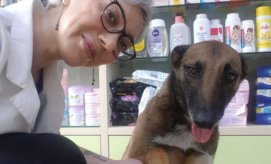 La actitud del animal le llamó la atención a Banu, quien finalmente se acercó al perro y se dio cuenta que tenía una pequeña herida en una de sus patas, la cual estaba sangrando. Así que lo metió a la farmacia, lo revisó y terminó curándolo.