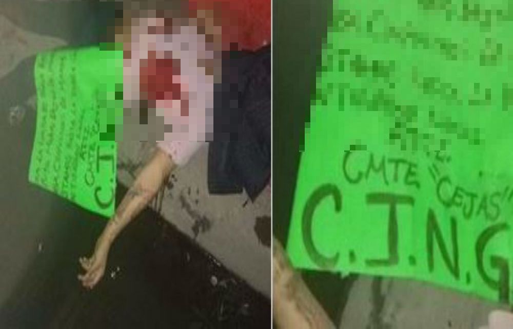 La cartulina que cubría al cuerpo advertía que se trataba de una limpia en contra de miembros de organizaciones delictivas rivales y hasta les pidió que dejarán de cometer crímenes; el mensaje supuestamente fue firmado por “El Comandante Cejas“, uno de los líderes del Cártel Jalisco Nueva Generación en la región.