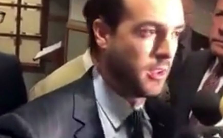 A la salida de la corte, el actor se acercó a la prensa que estaba allí cubriendo el caso… Con mucha tranquilidad y sin contestar ninguna de las preguntas que se le hacía dijo lo siguiente: