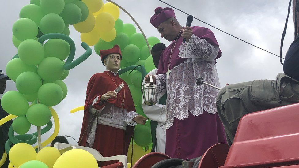 Mientras bendecía el agua para rociar la ciudad, el obispo de Buenaventura comenzó a enumerar los “males” que debían ser expulsados.