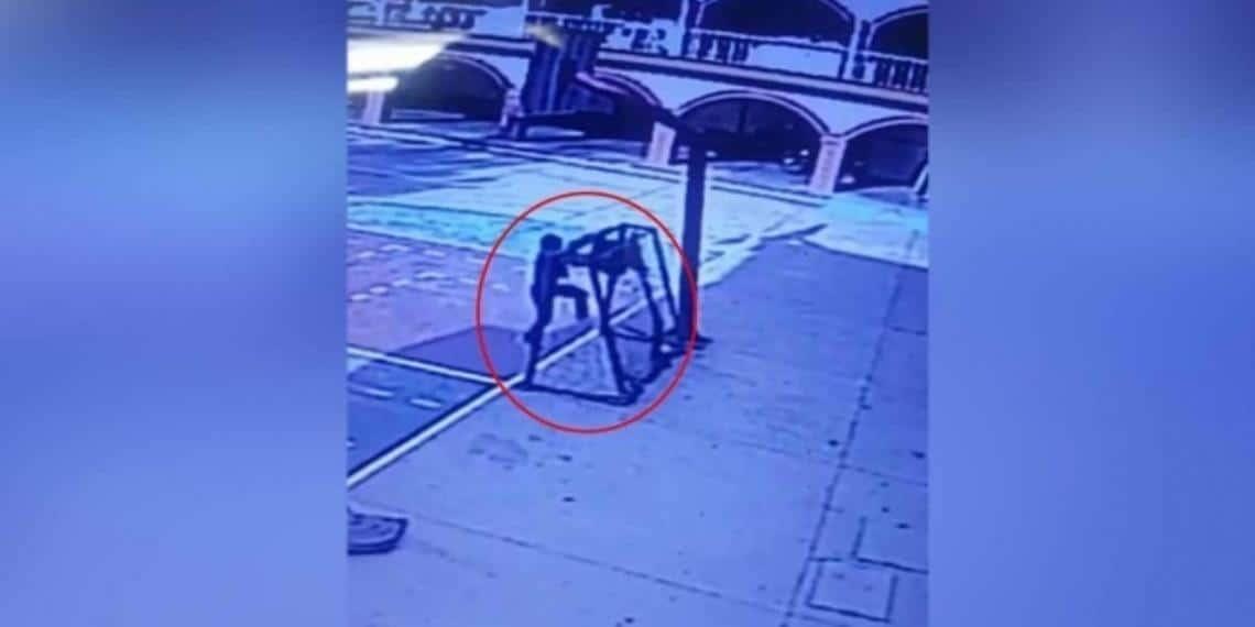 La tragedia fue captada por las cámaras de videovigilancia del municipio, donde se observa al menor de 10 años, junto con otro pequeño jugando en la portería.