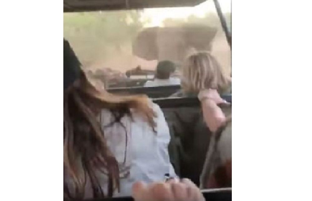 Un video muestra el momento en que un elefante furioso ataca un auto lleno de turistas durante un safari. El enorme animal golpea el todoterreno y lo persigue mientras barrita en una carrera casi frenética.