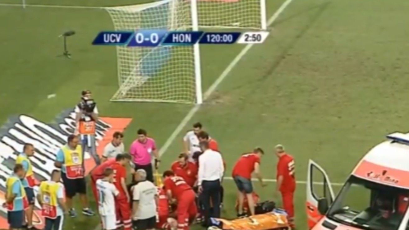 Hermoso final entre Universidad Craiova y Honved por la Pre Europa League. A falta de 3 minutos para los penales mini tangana, los hinchas rumanos tiran una bomba a la cancha y explota al lado del árbitro; se desmaya, resucita amonesta a uno de cada lado y suspende el partido. pic.twitter.com/vyvG2sPI5C